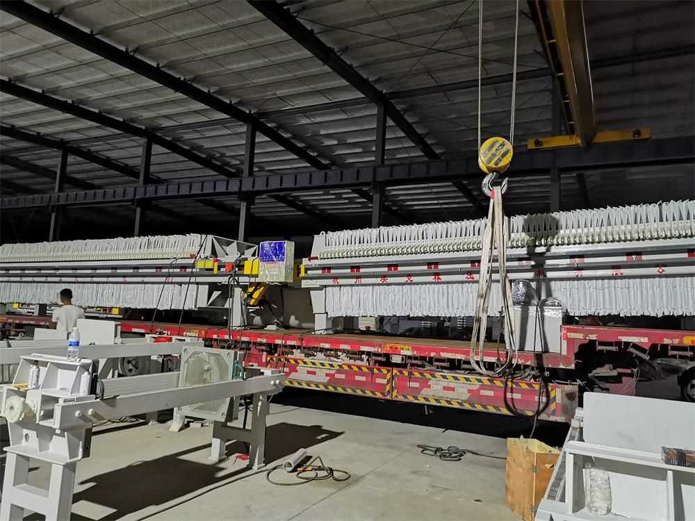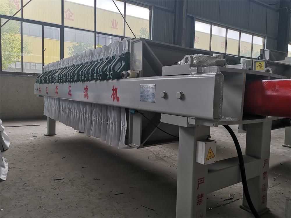 隔膜壓濾機(jī)和常規(guī)箱式壓濾機(jī)的主要區(qū)別在于,在濾板的兩側(cè)都增加了兩個(gè)彈性膜(復(fù)合橡膠膜是一個(gè)整體式膜。在操作期間,當(dāng)進(jìn)料完成時(shí),將高壓流體介質(zhì)注入膜中,并使整個(gè)膜膨脹以過濾濾餅,以進(jìn)一步使濾餅脫水,這是壓力過濾。在隔膜壓濾機(jī)運(yùn)行期間,液壓系統(tǒng)使用液壓油作為壓力載體來傳遞內(nèi)部壓力。